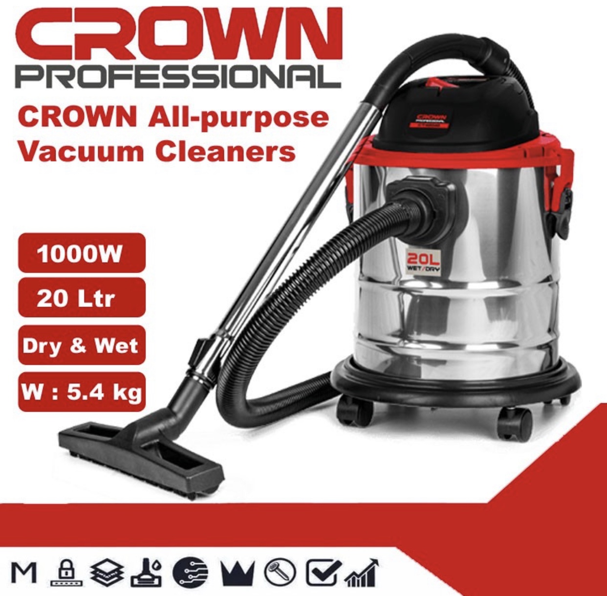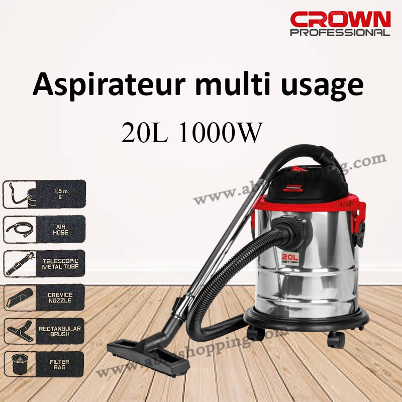 مكنسة كهربائية متعددة الاستخدامات CROWN – سعة 20 لتر / قدرة 1000 واط