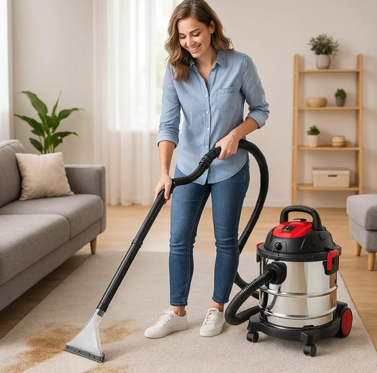 تأتي بمحرك عالي الكفاءة بقدرة 1000 واط وسعة حاوية 20 لترًا من الفولاذ المقاوم للصدأ، مما يجعلها مثالية للتعامل مع الغبار، الأتربة، نشارة الخشب، وحتى السوائل المنسكبة.